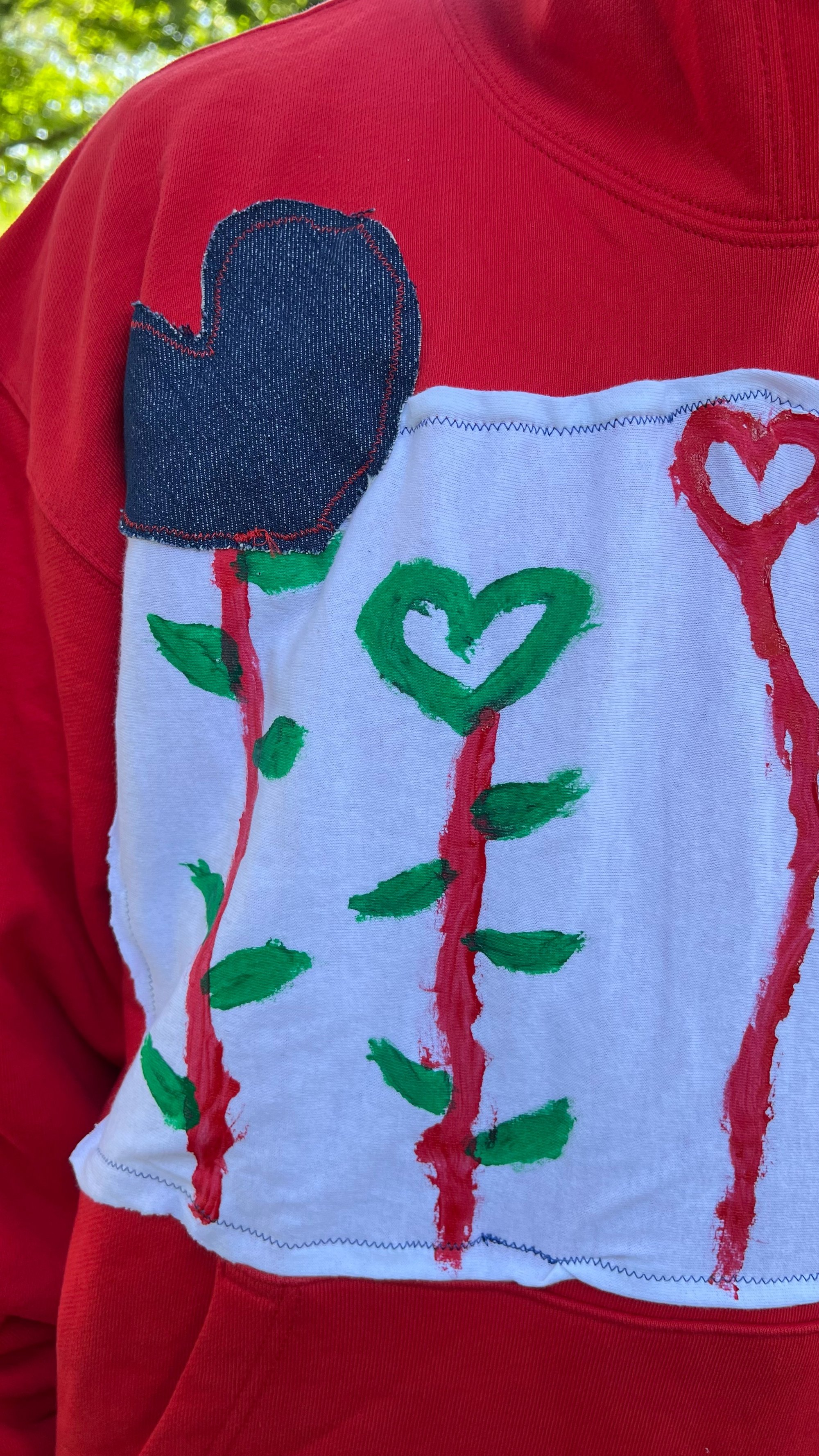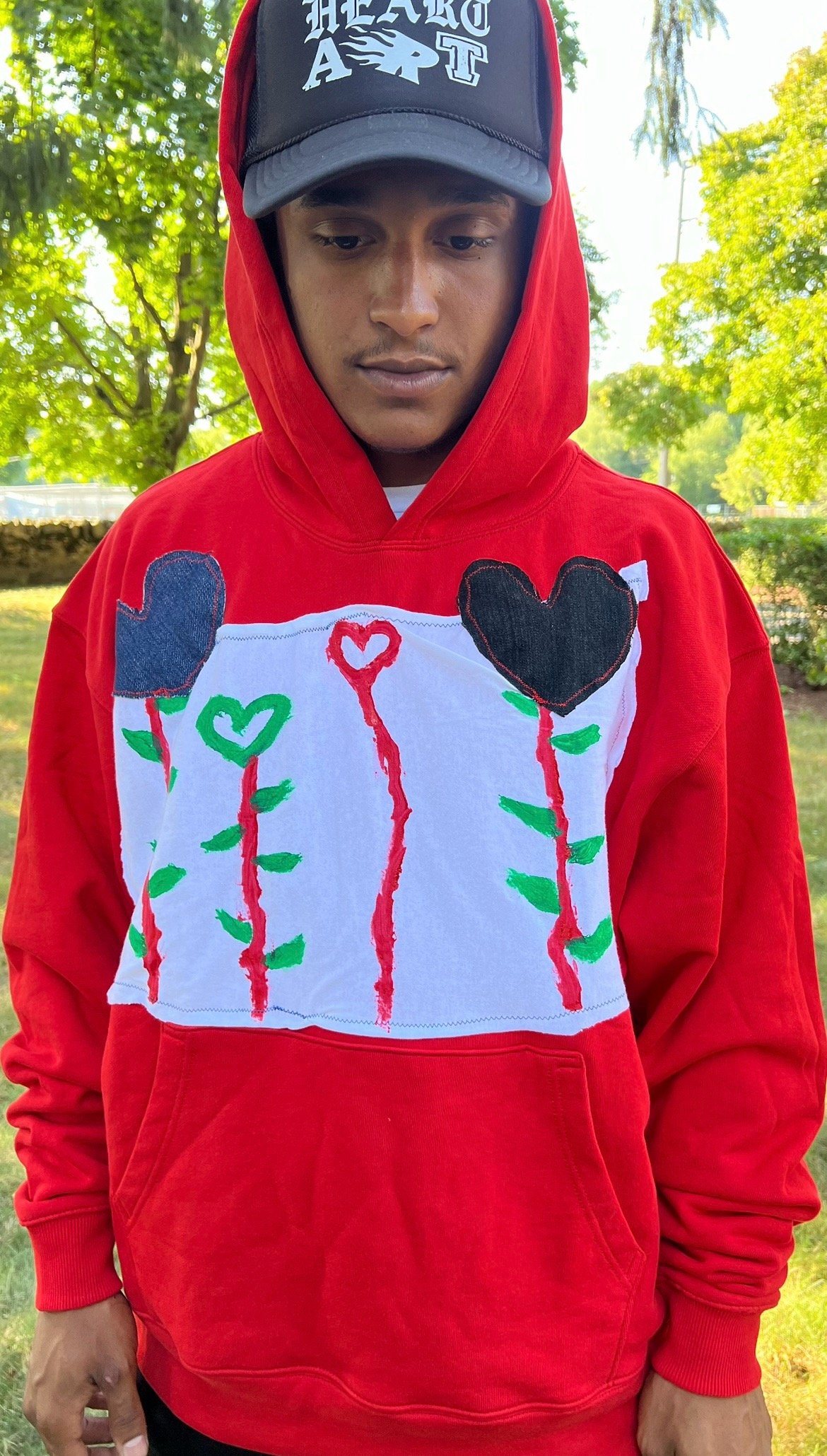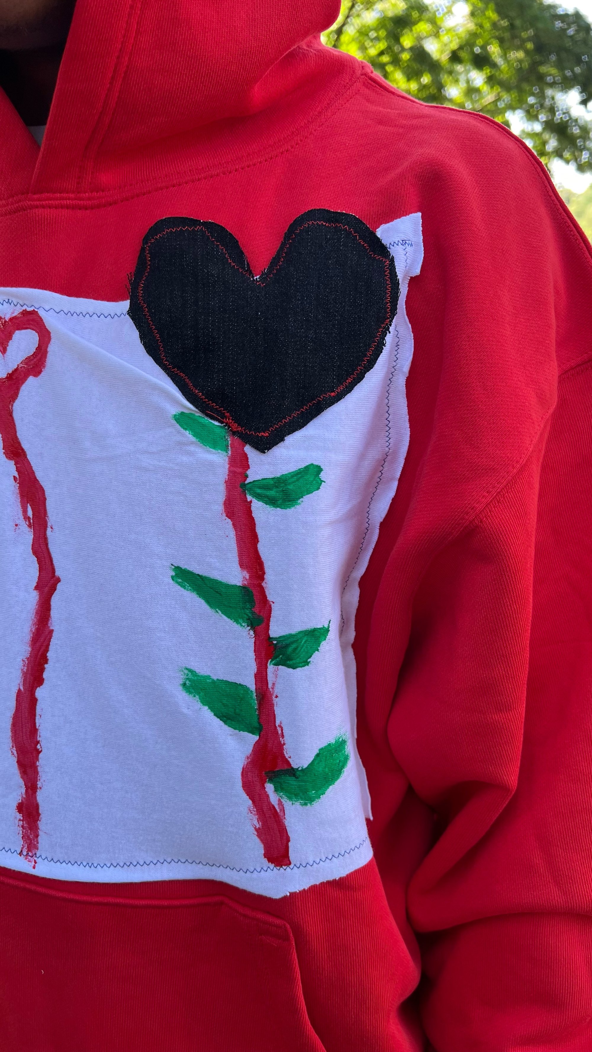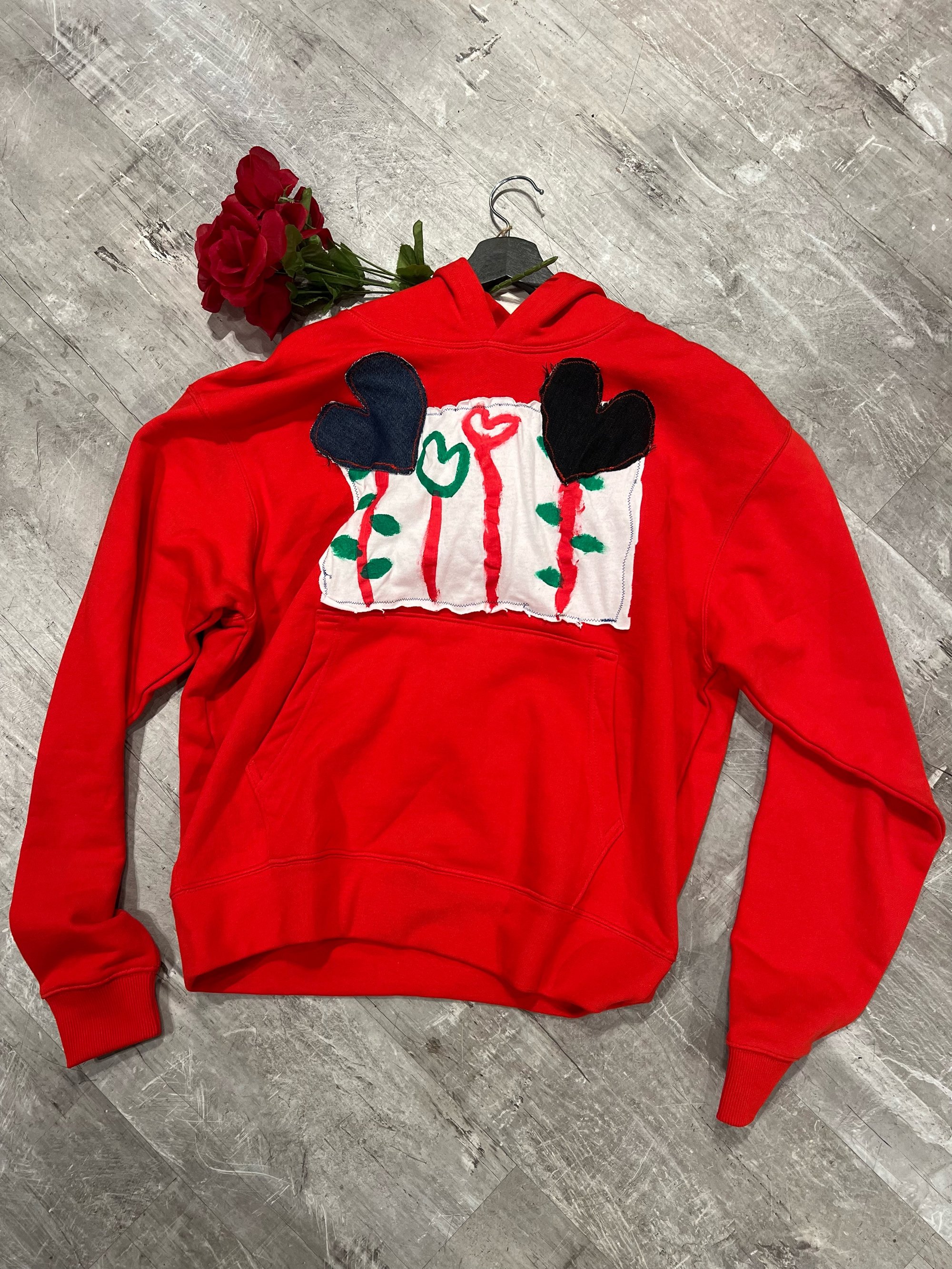 A heavyweight French terry hoodie hand painted and sewn design. Inspired by the idea of picking flowers in the fashion capital 𝒫𝒜ℛℐ𝒮 it comes with roses when it buy a hoodie 🌹